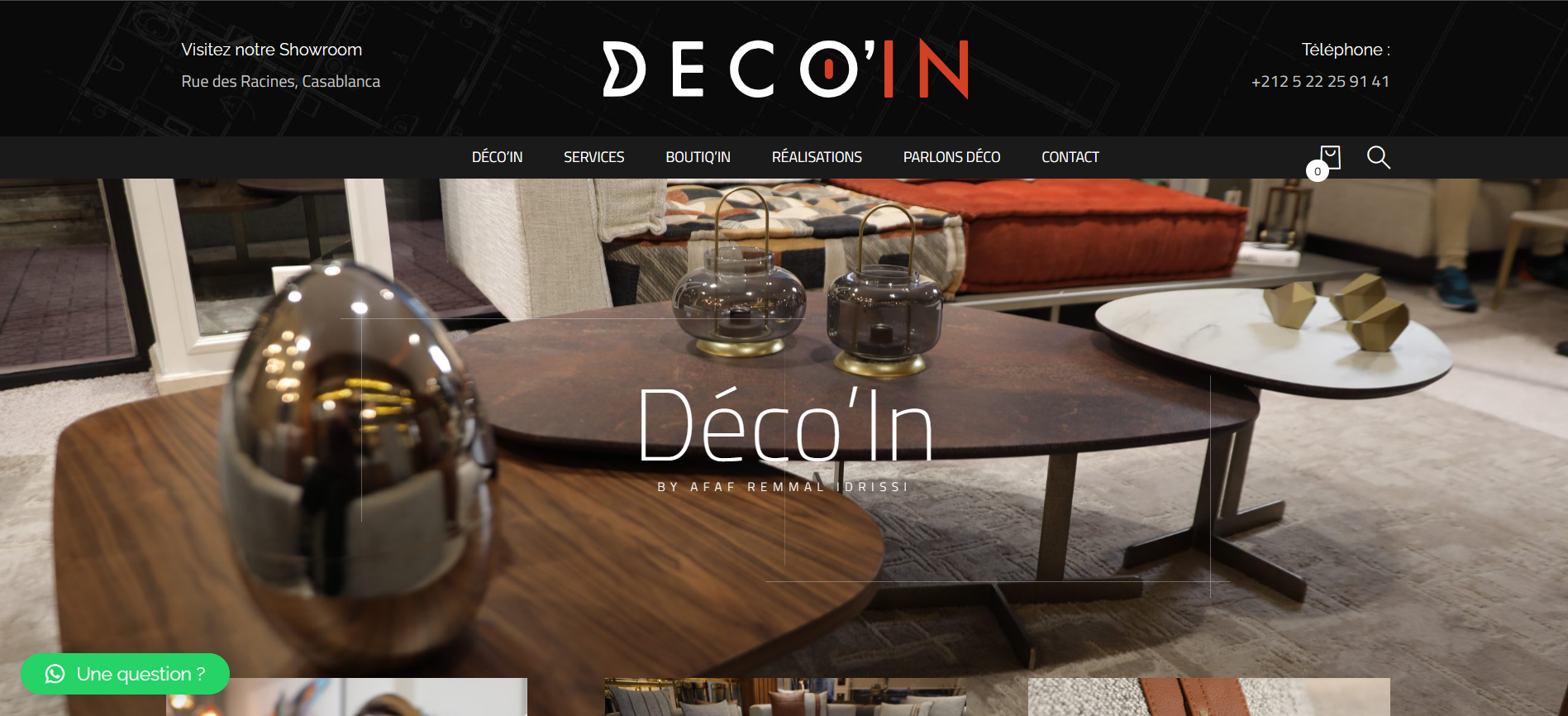 Création d’un site web vitrine pour Deco-in.ma, spécialisé dans la décoration intérieure et le design d’espaces modernes et élégants.